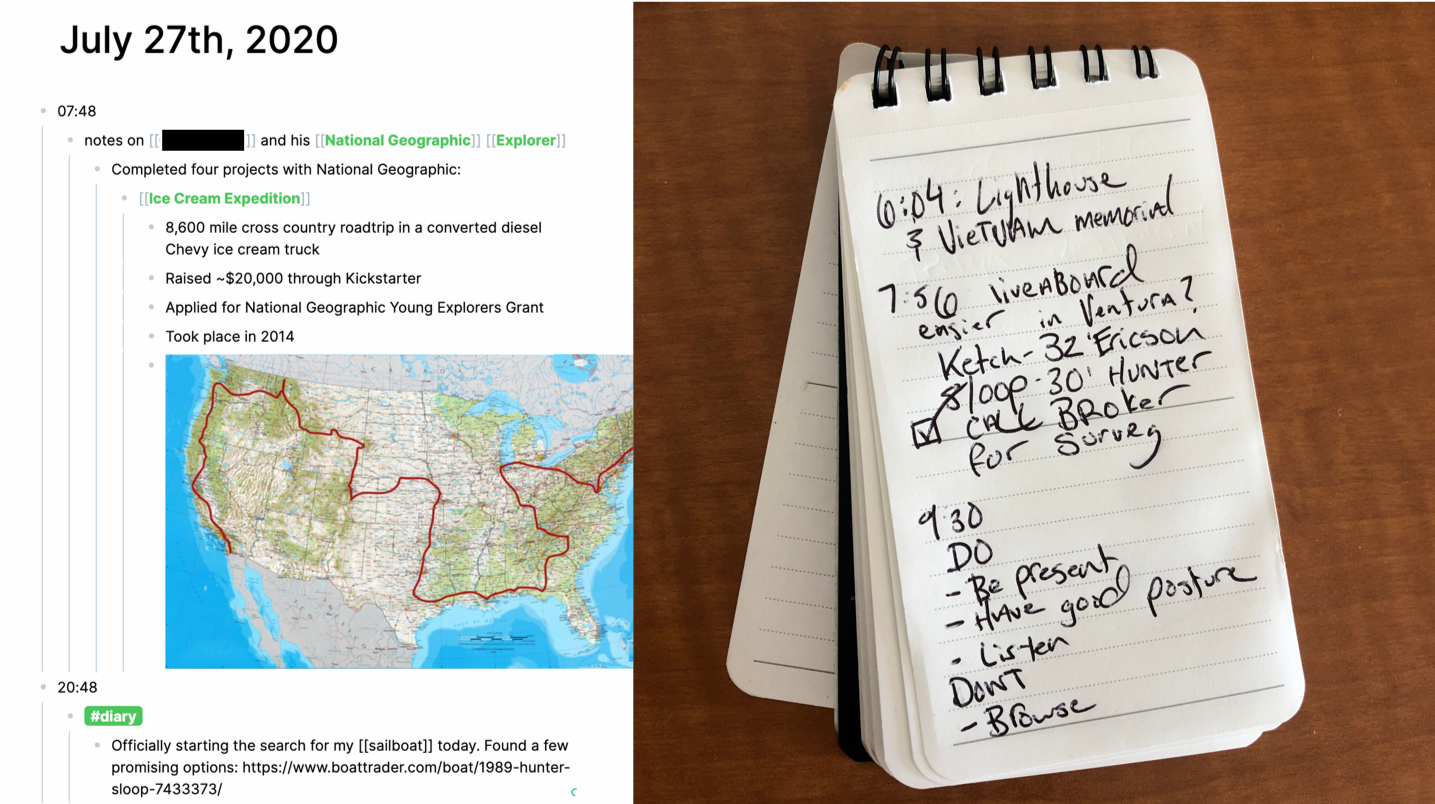 The best way to build a note-taking habit is just to get started. Choose a place where you will consistently take notes and stick to it. For example, I use Roam Research when I’m on my laptop and a small Mnemosyne notebook when I’m out and about.